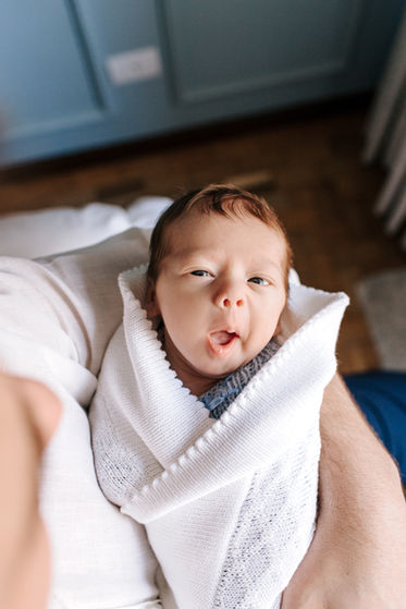 O ensaio do bebê recém-nascido é feito na casa da família, pelo conforto e intimidade que o lar traz.